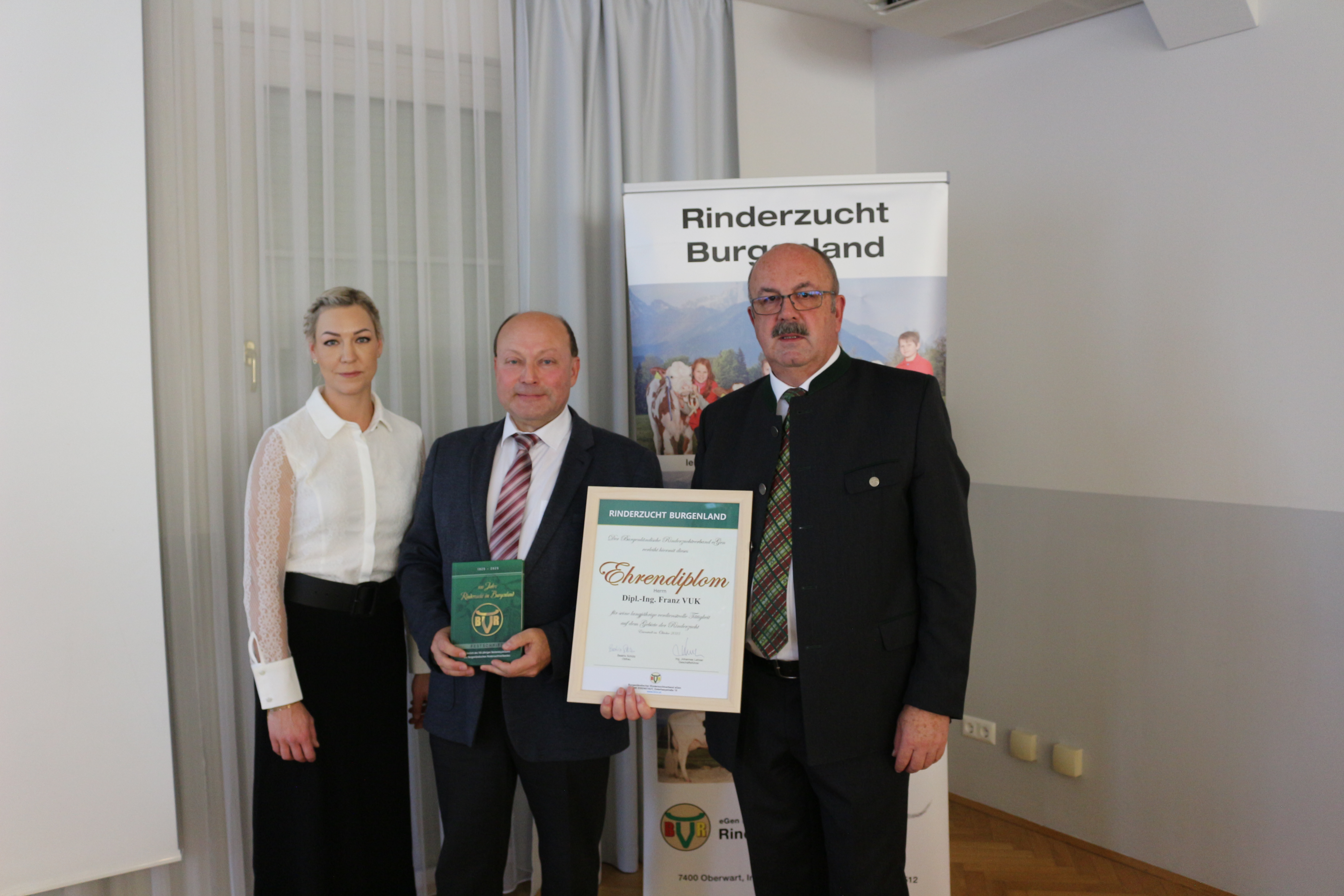 Der Burgenländische Rinderzuchtverband feierte am 29. Oktober 2025, im Zuge einer Jubiläumsgeneralversammlung, sein 100-jähriges Bestandsjubiläum. Zu diesem feierlichen Anlass konnte Obfrau Beatrix Schütz auch zahlreiche Ehrengäste begrüßen. Unter ihnen Fr. LHStv. Anja Haider-Wallner, LK Präs. DI Niki Berlakovich, den Obmann der Rinderzucht Austria ÖR Ing. Thomas Schweigl, sowie viele andere Ehrengäste aus Nah und Fern.